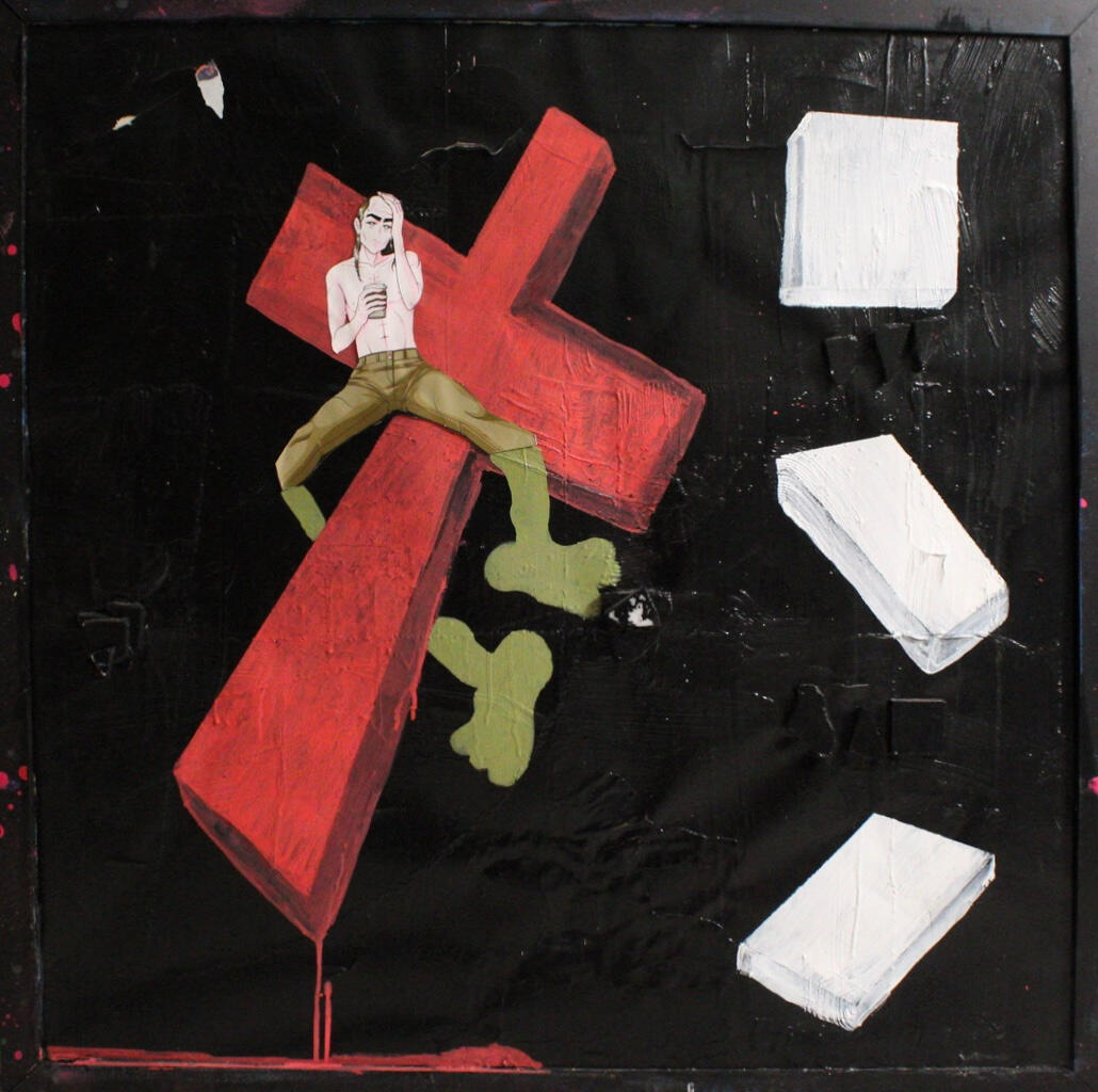 "PRAY FOR (THEM)", 2024, Mixed media on canvas - 35 in x 40 in x 1.5 in